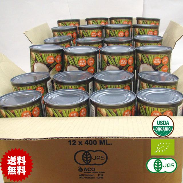 有機JAS ココナッツミルク 400ml 24缶 オーガニック 砂糖不使用 中鎖脂肪酸 無精製 無漂白 無保存剤 noBPA缶 organic coconut milk