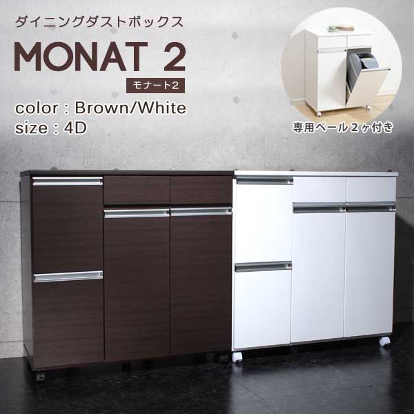 ふた付きペール2ヶ付きで収納力たっぷりのキャスター付きダストボックスワゴン ダイニングダストボックス モナート2