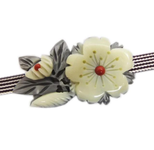 帯留め 帯止め 手彫り オフホワイト地白色地桜 日本製 箱入り 着物 きもの 浴衣 帯どめ 帯飾り 帯かざり 訪問着 付下げ 色無地