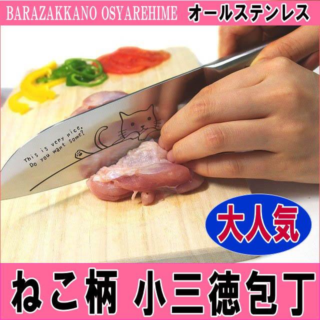 包丁 ネコ 小 三徳 プレゼント 猫 メルペール オールステンレス 猫イラスト 箱付き ナイフ キッチン 結婚祝い ねこ 猫柄 猫雑貨