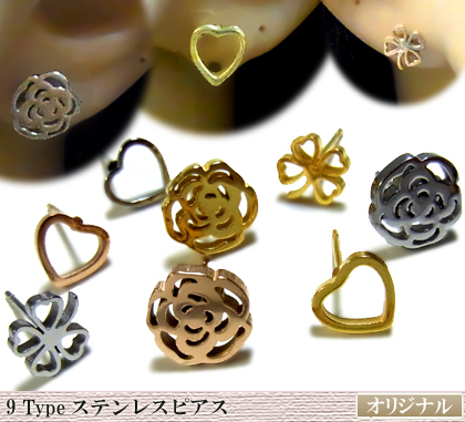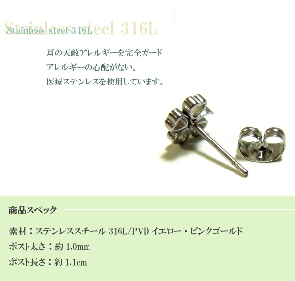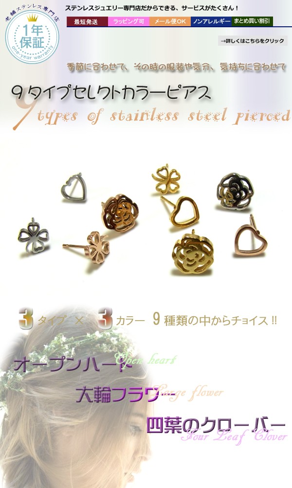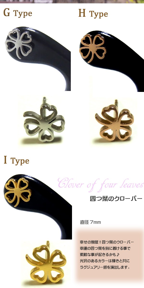 送料無料 ピアス ピンクゴールド イエローゴールド シルバー レディース ハート クローバー フラワー ステンレス 片耳用/