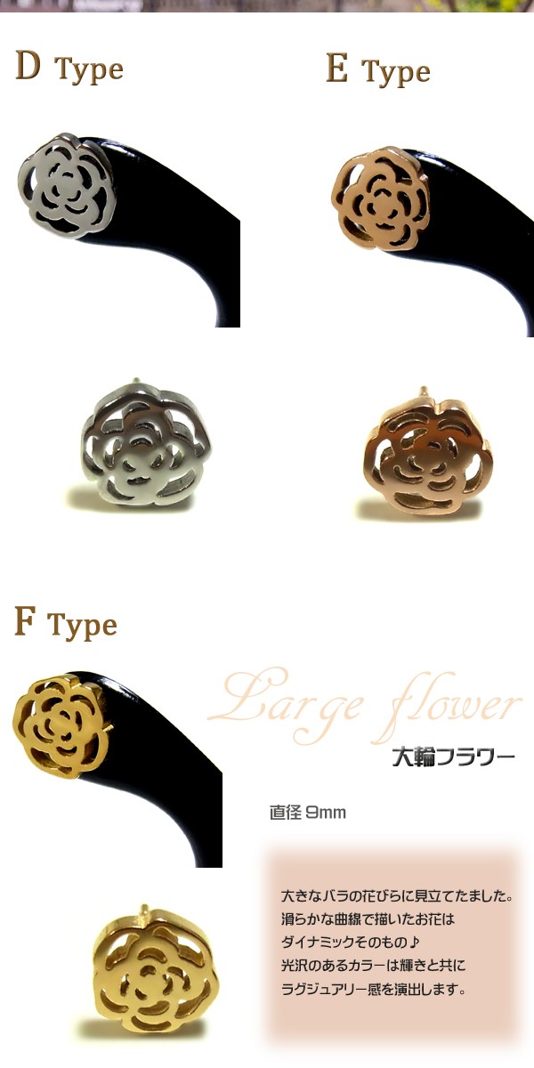 季節に合わせて、その時の服装や気分、気持ちに合わせて。オープンハート、大輪フラワー、四つ葉のクローバーよりお好きなタイプをお選び下さい♪