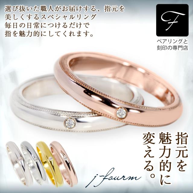 送料無料 刻印無料 ペアリング ダイヤモンド シルバー925 ミルグレインリング ミル打ち シンプルリング 3mm 幅 宅配便