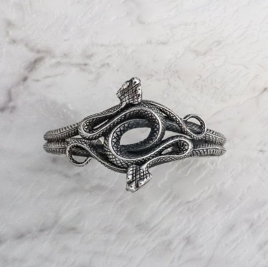 2匹の蛇が絡み合う在感抜群のバングルです。