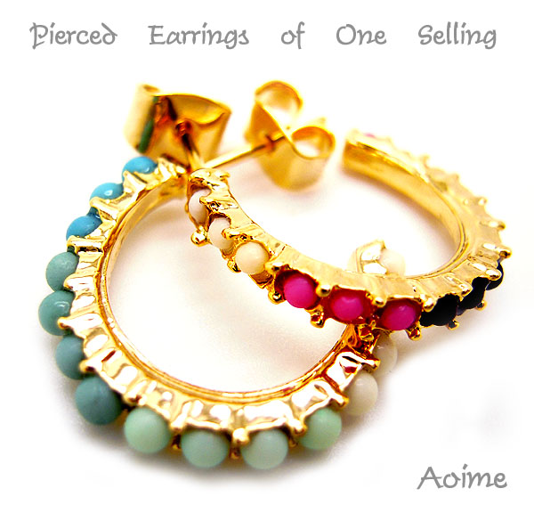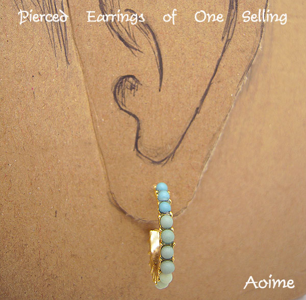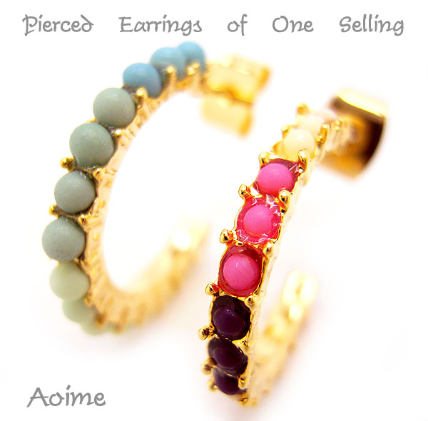 ピアス 15石 ハーフムーン パヴェピアス グラデーション ブルー ピンク フープ リング 輪 片売り1-148-197