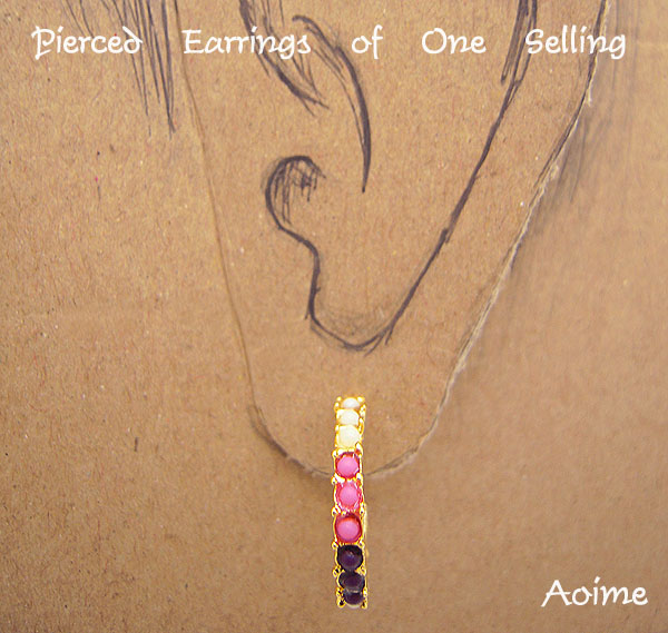 15石の人工ストーンがグラデーションカラーに配置されたハーフフープピアスです。小粒で程よい感じの華やかさがあります。微妙に色を変えたグラデーションがナチュラルな雰囲気で、とってもキュート。