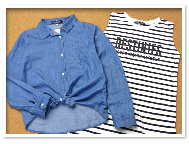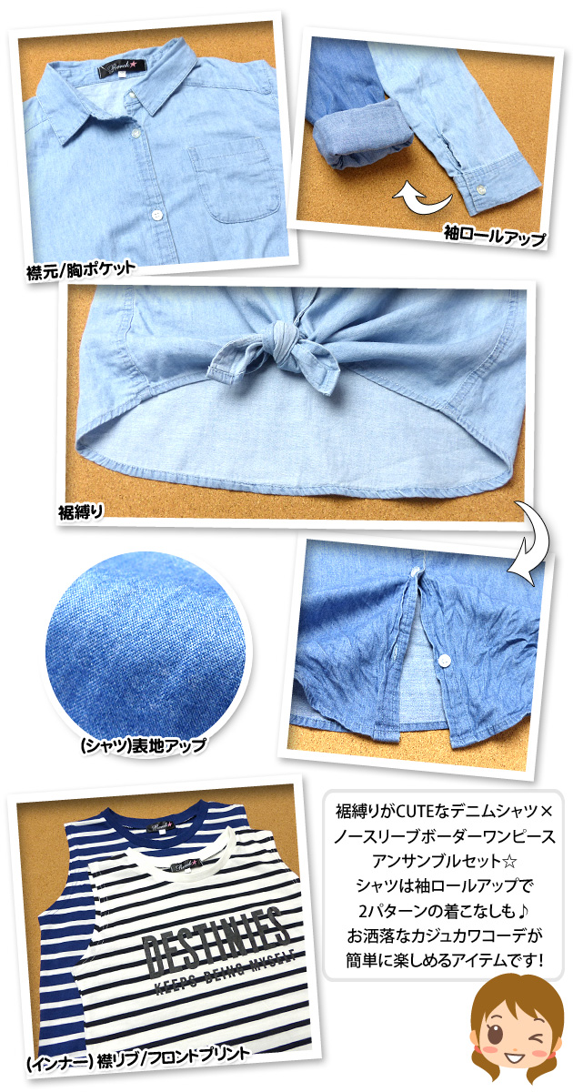 裾縛りがCUTEなデニムシャツ×ノースリーブ