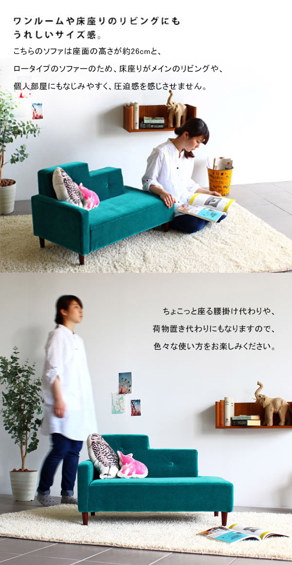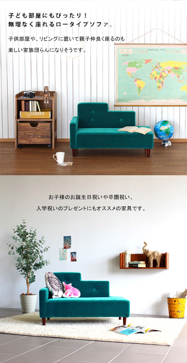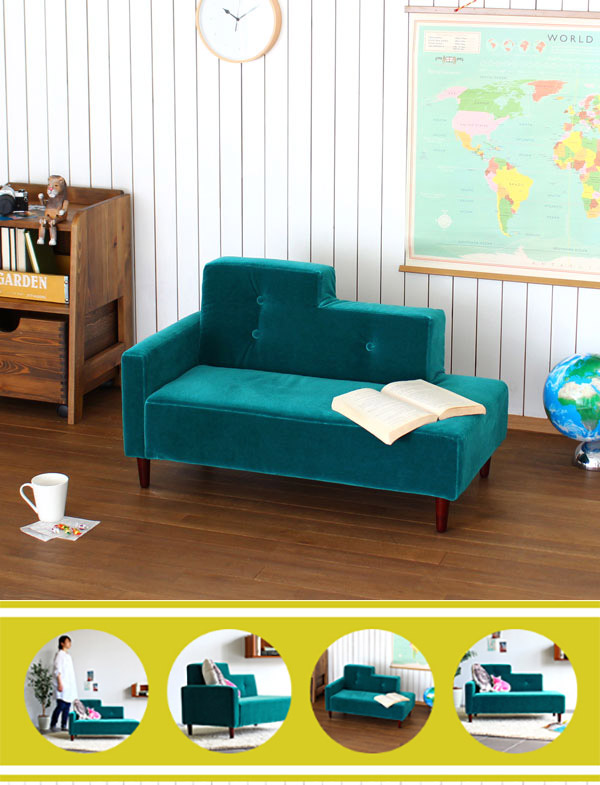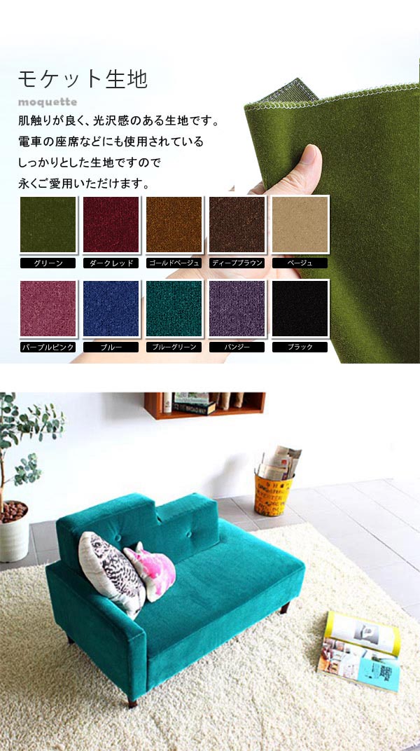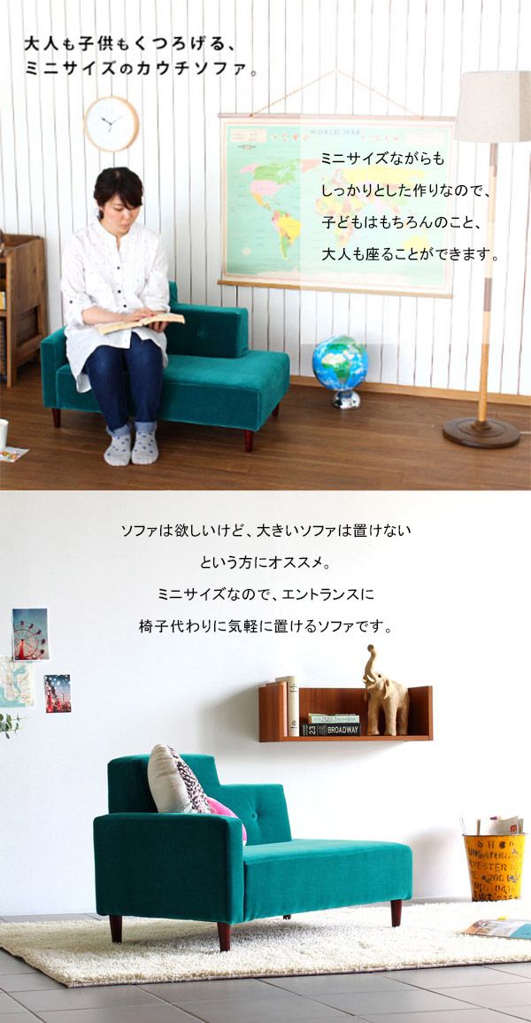 カウチソファ 可愛い ミニソファ コンパクト 片肘ソファ キッズソファー ベッド mini Step カウチ モケット ベロア アーネインテリア □