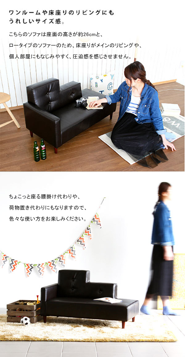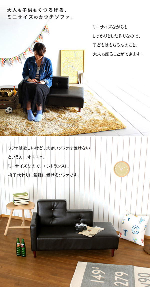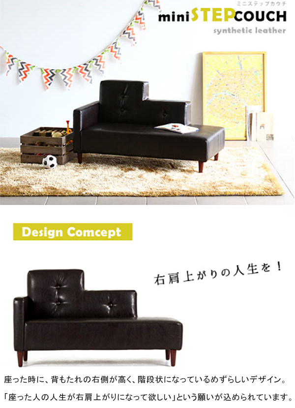 カウチソファ 可愛い ミニソファ コンパクト 片肘ソファ キッズソファー ベッド mini Step カウチ 合皮 arne アーネ □