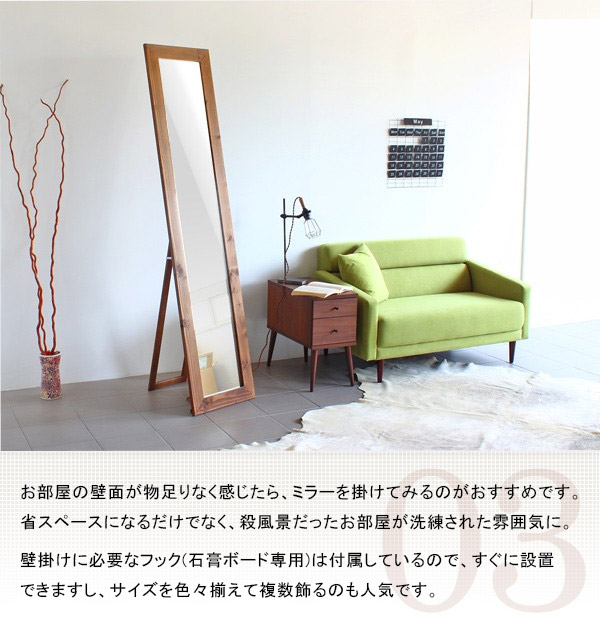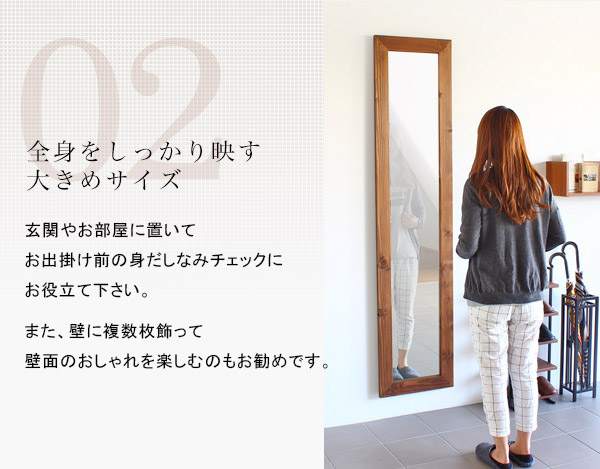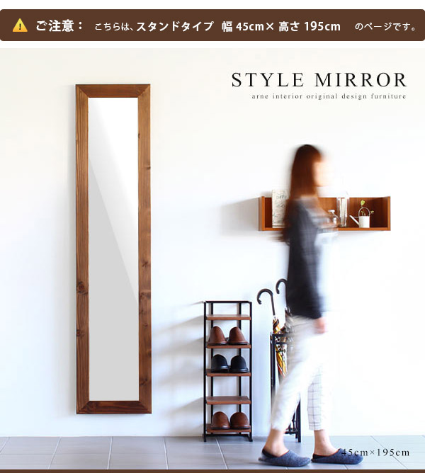 スタンドミラー 全身 幅45 壁掛け鏡 木枠 ミラー 鏡 壁掛け アンティーク 天然木 style SM3018 LBR アーネ arne ▽