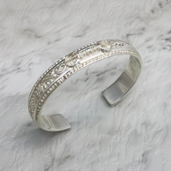 『力強い生命力』『永遠』が意味合いの蔦(アイビー)を全体に掘り込み、中央にはソカロのアイコンであるドージェがデザインされた傑作のバングル。