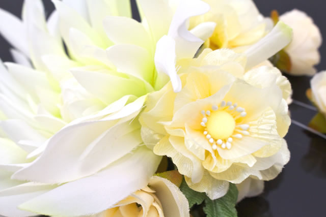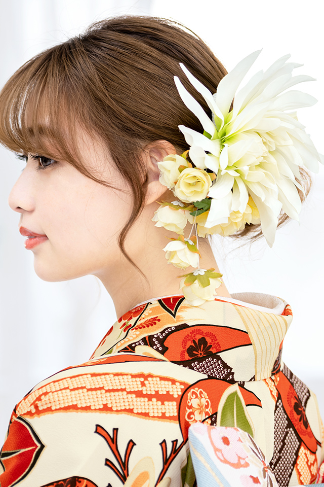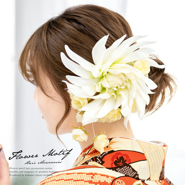成人式 髪飾り 成人式の髪飾り 黄色 イエロー 花 椿 薔薇 コサージュ 卒業式 結婚式 二次会 振袖 袴 前撮り 髪留め ヘアアクセサリー 日本製 和装