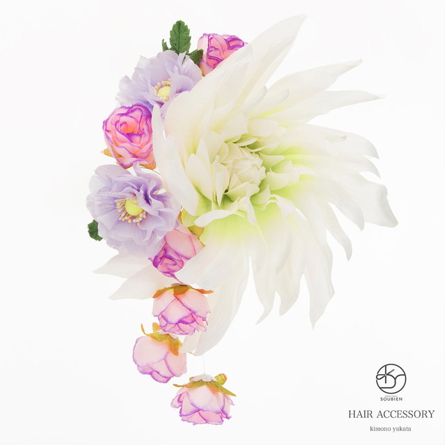 成人式 髪飾り 成人式の髪飾り 紫 パープル 花 椿 薔薇 コサージュ 卒業式 結婚式 二次会 振袖 袴 前撮り 髪留め ヘアアクセサリー 日本製 和装