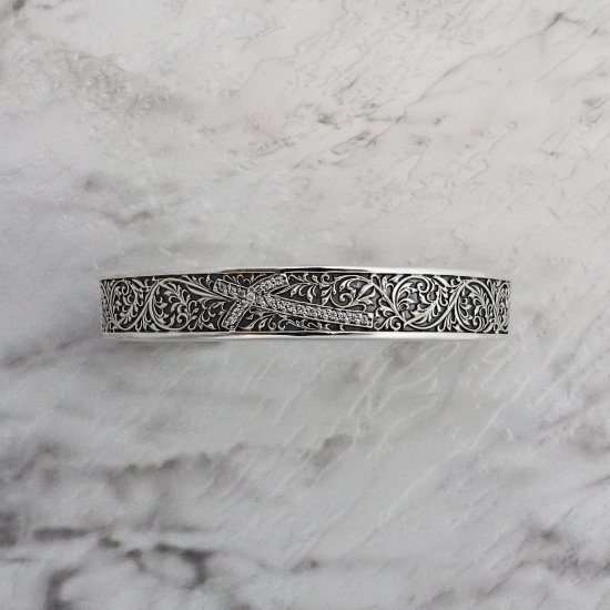 【ZOCALO】ソカロのアイビー・クロス・バングル・ホワイトCZ