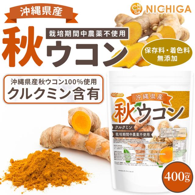 沖縄県産 秋ウコン 400g 【メール便専用品】【送料無料】 クルクミン含有 栽培期間中農薬不使用 秋ウコンを100%使用 ミネラルが豊富 [05] NICHIGA(ニチガ)