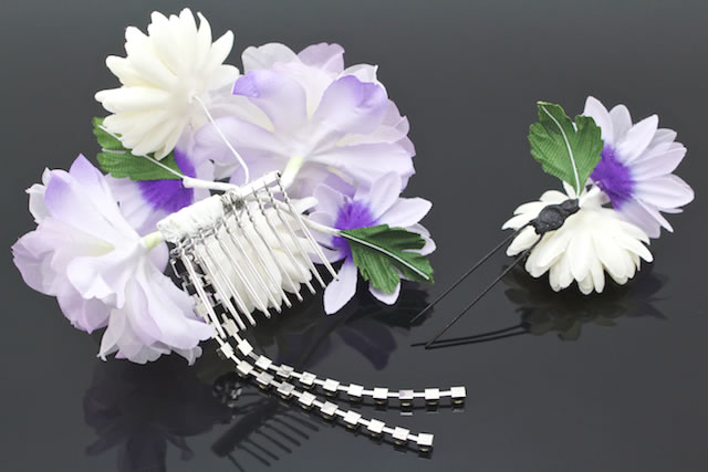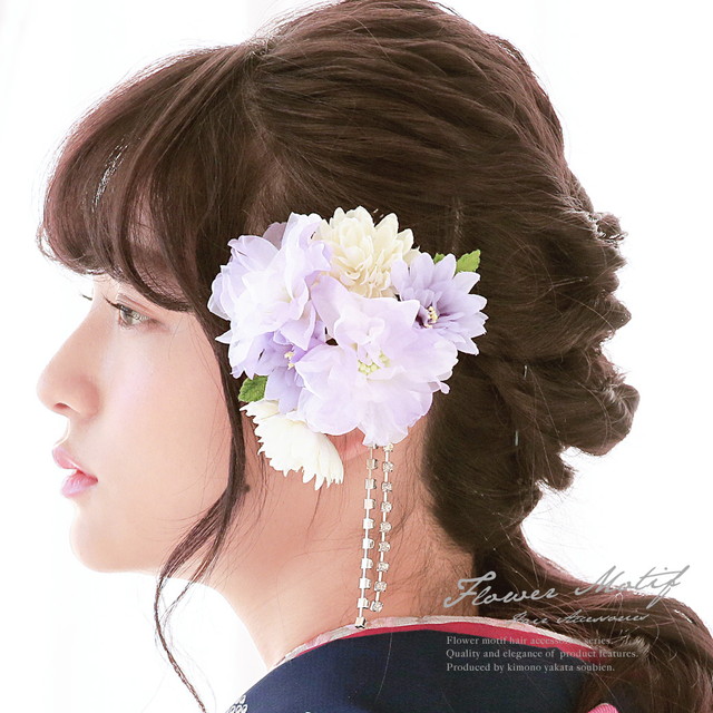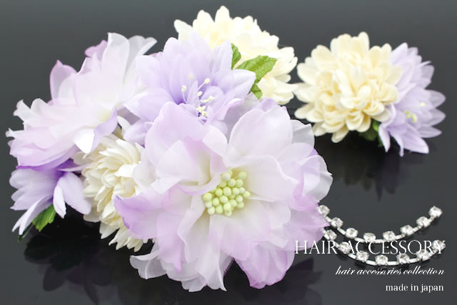 成人式 髪飾り 成人式の髪飾り 2点セット 紫 パープル 菊 花 ラインストーン コサージュ 卒業式 振袖 袴 前撮り 髪留め ヘアアクセサリー 日本製 和装