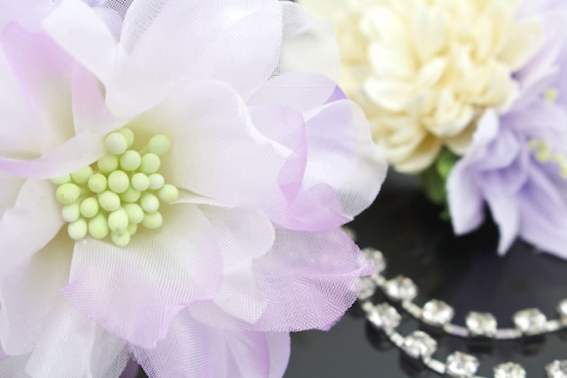 大小のコサージュによる、花の髪飾り2点セットです。