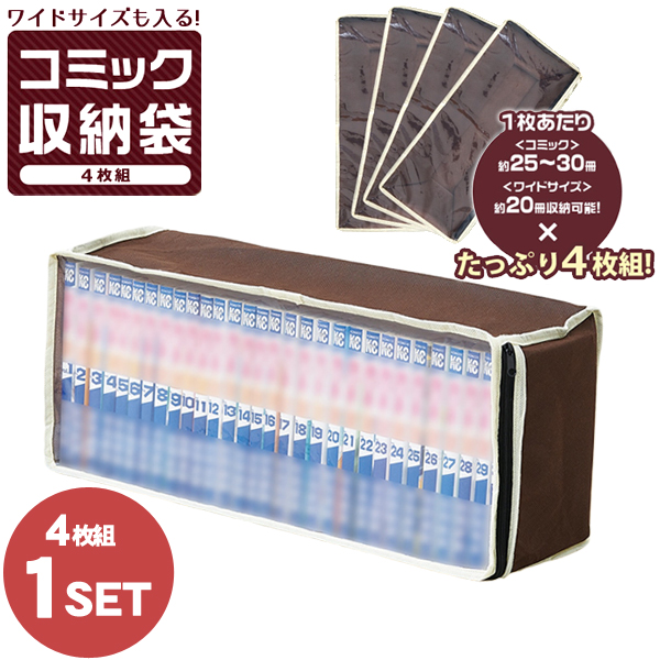 コミック 収納 ケース 透明窓 漫画 本 ワイドサイズ コミック収納袋 4枚組 (im-8817m)[宅配B]【送料無料】 約25〜30冊収納 A5 単行本 マンガ収納袋 収納ボックス コミック 本 書籍 漫画 文庫本 大掃除 掃除グッズ 整理整頓 スマート agesugi_snk