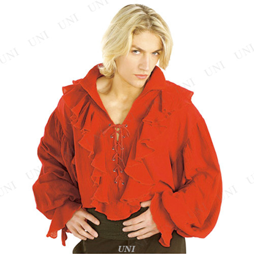 コスプレ 仮装 パイレーツシャツ ガーゼ/レッド XL (大きいサイズ) RUBIE'S JAPAN 海賊 コスプレ衣装 仮装 ファンタジー フィクション 大人 レースアップ フリル