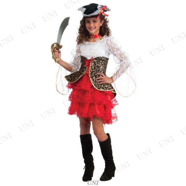 | 商品説明 | 今やハロウィン仮装の定番になりつつある海賊コスチューム!レースをたっぷりと使用したドレスにブラック&ゴールドのコルセットがお子様用とは思えないほどのゴージャスさ!仕上げにお好みのカトラス(別売)を持てばガーリーパイレーツの登場です ※サイズは平置き採寸となりますので多少誤差が生じます、予めご了承ください |