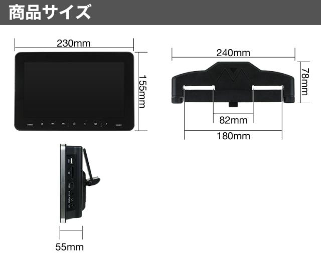 ヘッドレストモニター 9インチ DVDプレーヤー 車載 後席 オートレジューム HDMI USB スマホ CPRM スピーカー内蔵 リアモニター