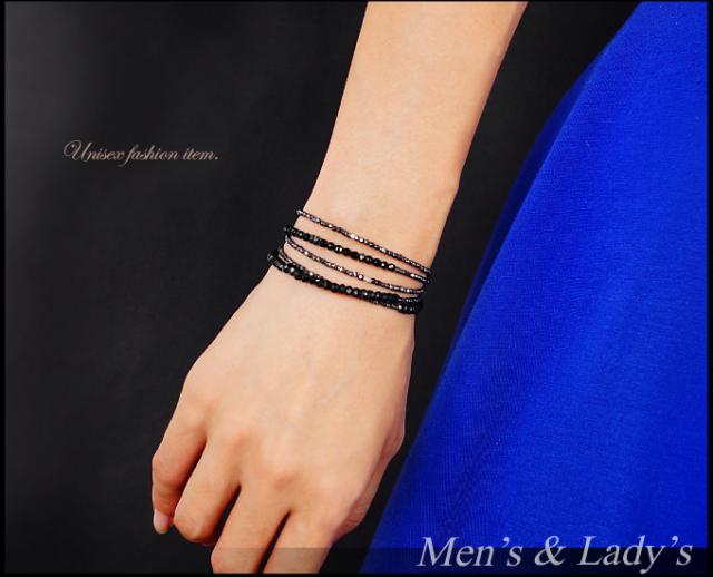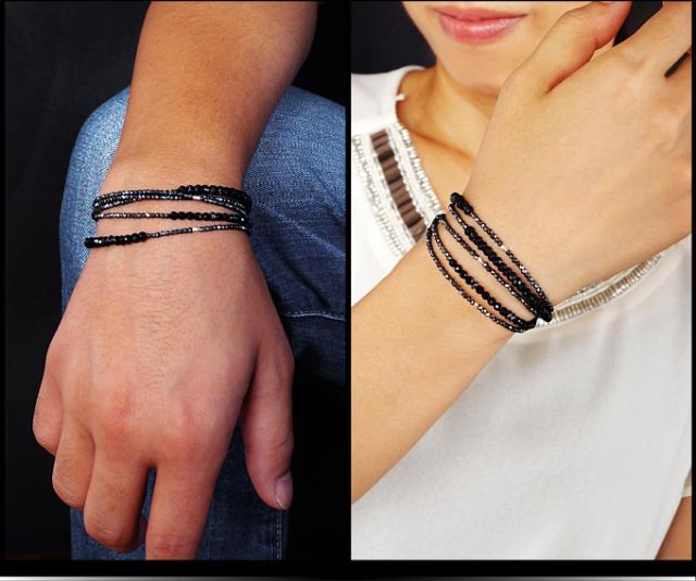 異なる輝きが微細に反射し合い、繊細ながら存在感のあるブレスレットとなっています。