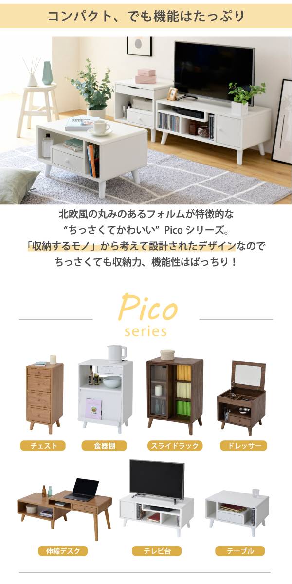 テレビ台 コンパクト 幅80 奥行41 高さ35.5 Pico かわいい 脚付き 北欧風 レコーダー収納 32型 対応 ナチュラル ホワイト ブラウン ひとり暮らし dvd収納 天然木