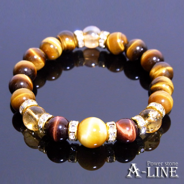 送料無料 パワーストーン ブレスレット AAAゴールデンタイガーアイ12mm&シトリン10mm PW-2890