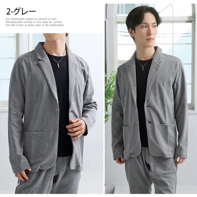 幅広いカジュアルコーディネートが楽しめるスウェット素材テーラードジャケットです