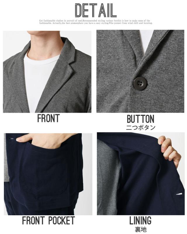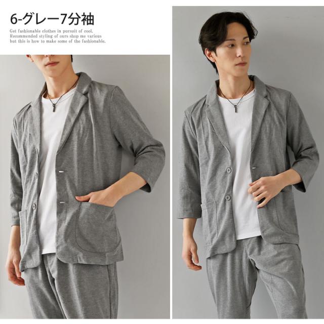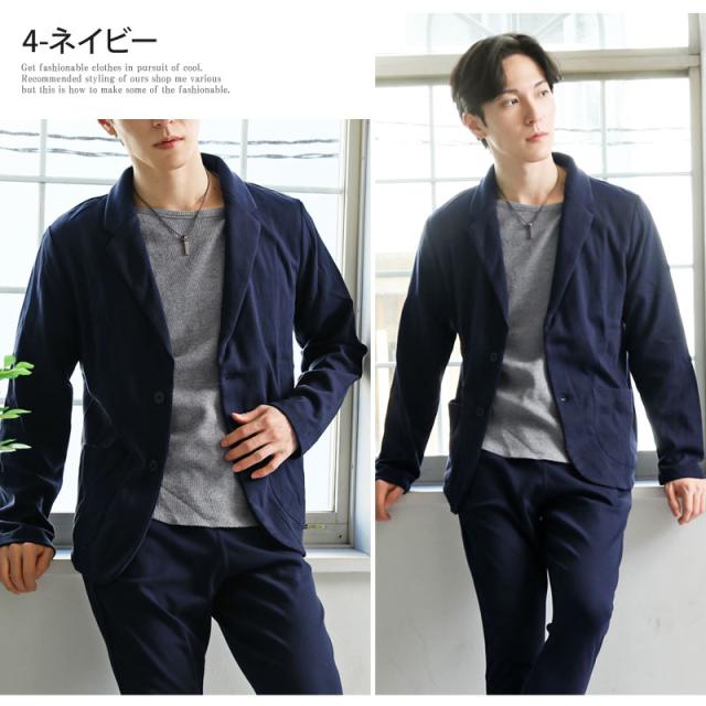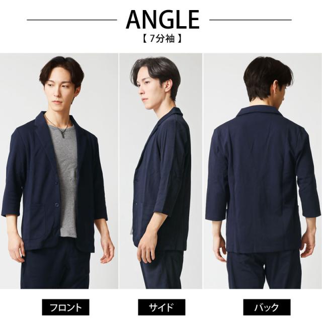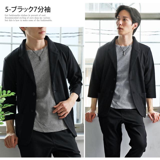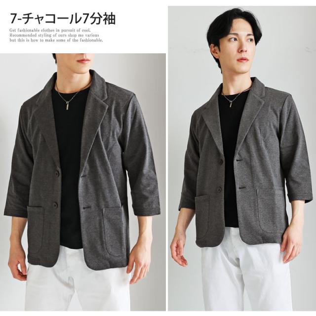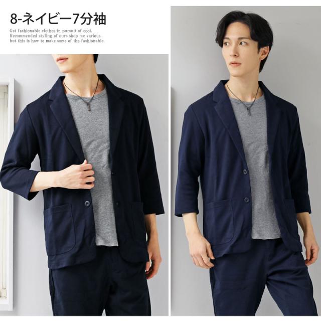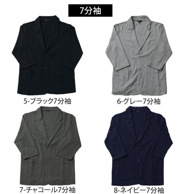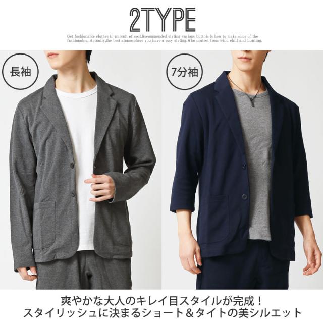 送料無料 長袖と7分袖の2タイプ スウェット素材ノッチドラベルシングルテーラードジャケット