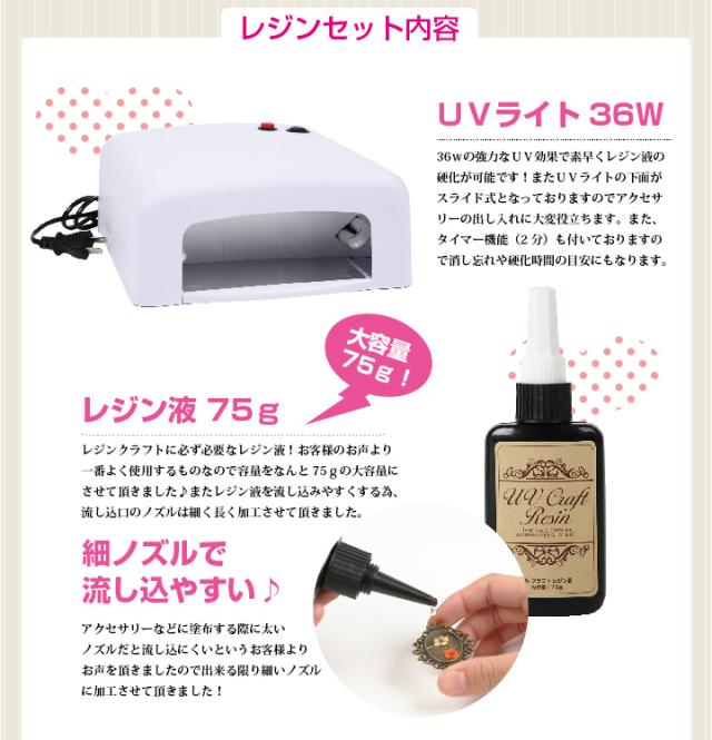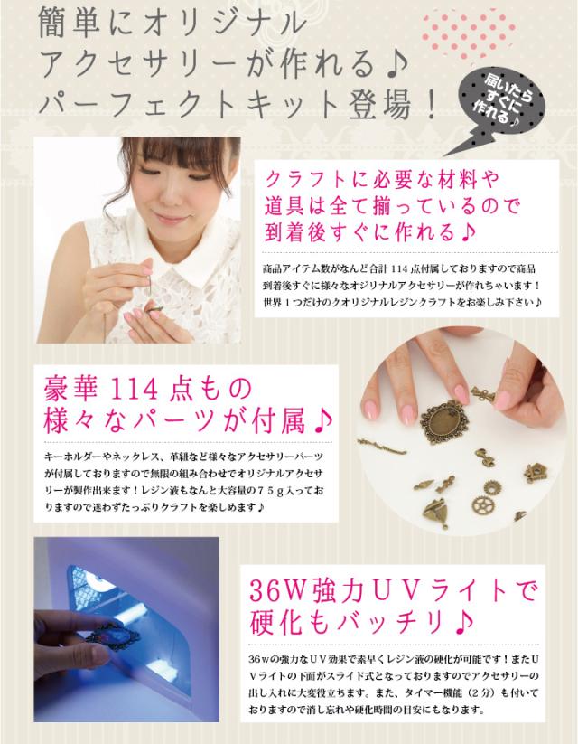 レジン手芸パーフェクトセット!【送料無料】[UVライト 手芸 レジンアクセサリー UVクラフトレジン レジン液]