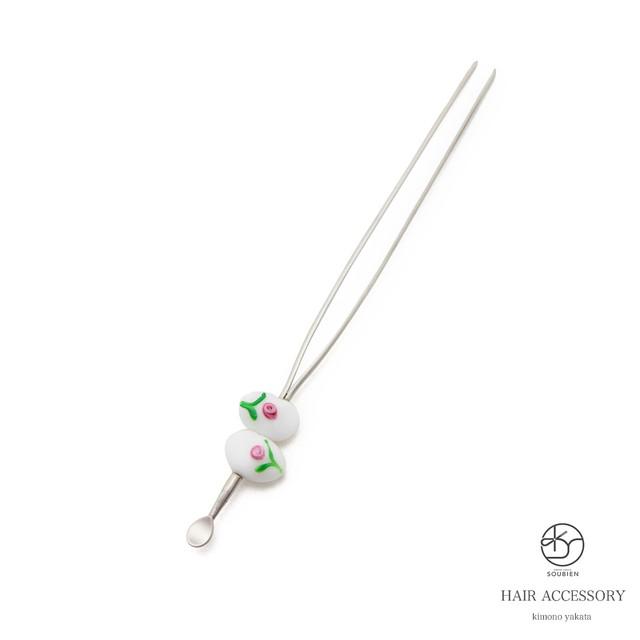 簪 かんざし 白 ホワイト 花柄 ガラス 髪飾り ヘアアクセサリー カンザシ 小紋 浴衣向け 日本製 和装