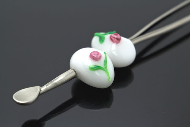 二粒の可愛らしい花が絵付けされた簪(かんざし)です。