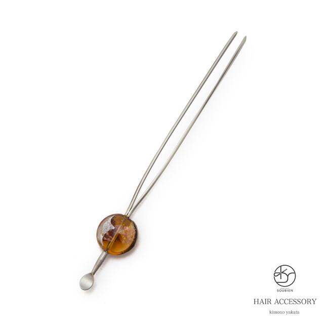 平玉簪 かんざし 茶色 ブラウン セピア色 ガラス 透明 クリア 平玉髪飾り ヘアアクセサリー カンザシ 小紋 浴衣向け 日本製 和装
