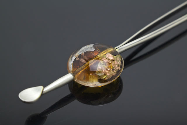 透け感のあるガラスの平玉簪(かんざし)です。