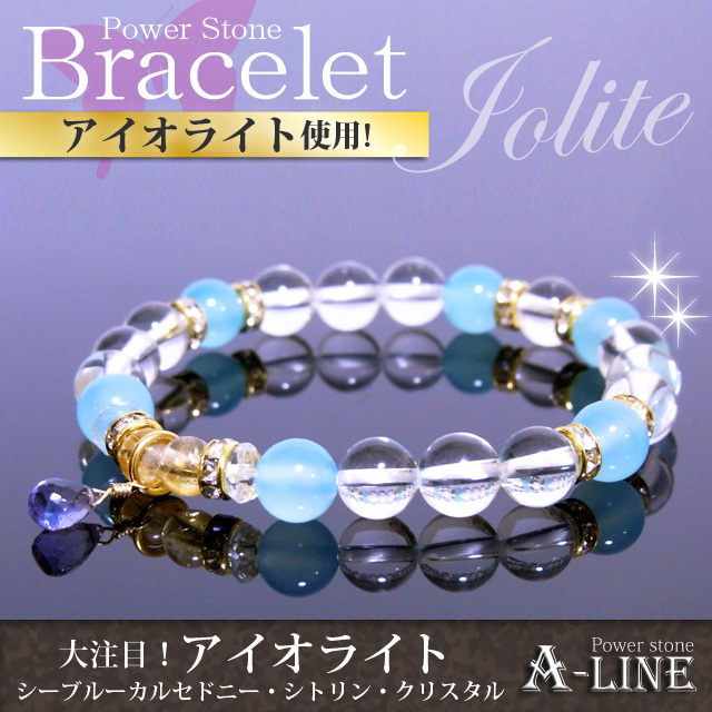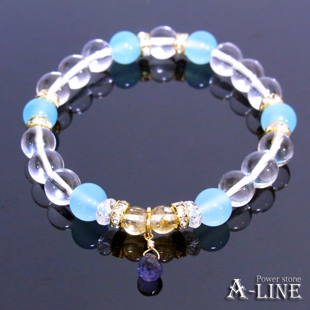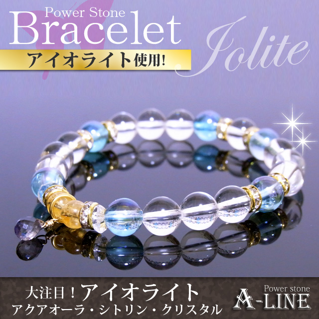 送料無料 パワーストーン ブレスレット9月の誕生石ブレストップに アイオライト アクアオーラ&シトリン使用 PW-2894