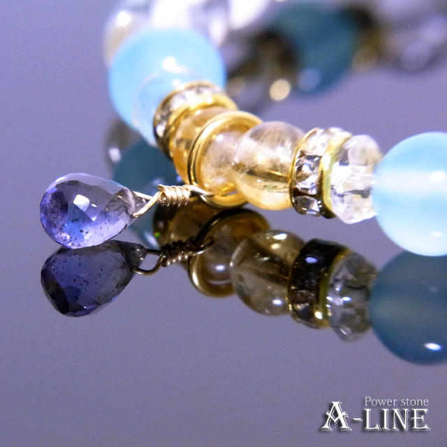 アイオライト(ワイヤー)・アクアオーラ&水晶8mm・シトリン6mm・カットクリスタル・合金ロンデル・国産高級オペロンゴム
