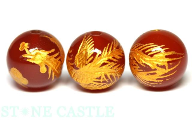 天然石 ビーズ【彫刻ビーズ】レッドメノウ 10mm (金彫り) 鳳凰 パワーストーン