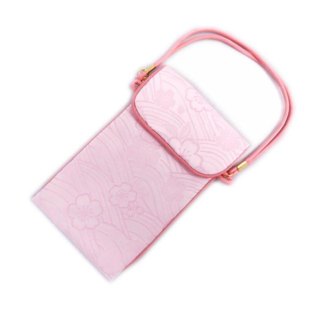 スマホポーチ メイク小物入れ ジャガード織 彩詩庵 和柄 薄ピンク地桜波 日本製 着物 浴衣 デニム 女性用 レディース 子供用 キッズ
