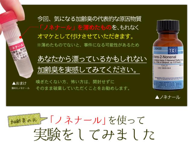 ※お買い上げの方にはその恐ろしい加齢臭「ノネナール」のサンプルもお付けします。