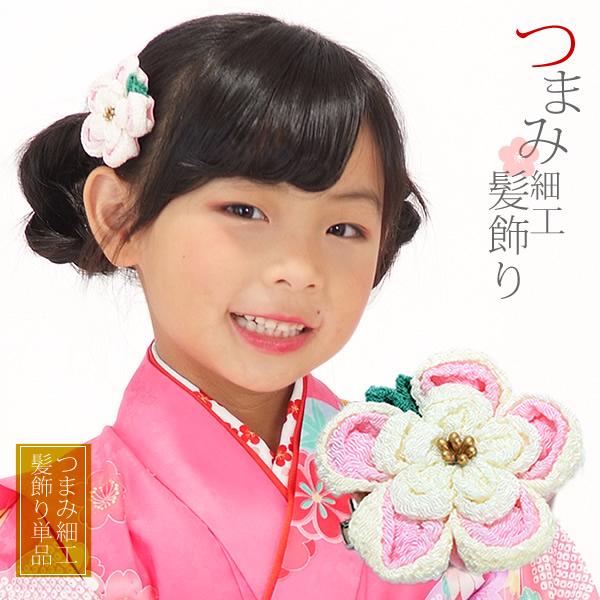 【Prices down3】七五三 髪飾り つまみ細工 髪飾り「ピンク×オフホワイト まんまるお花」卒園式 クリップ髪飾り 三歳 五歳の女の子に 七五三