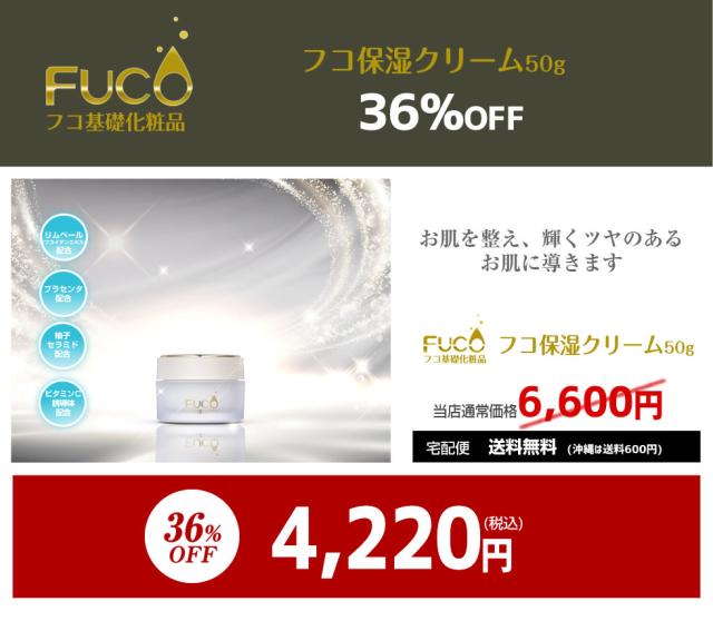 \【36%OFF】/【フコ保湿クリーム50g】【宅配便】★今話題の高級成分【フコイダン】をたっぷり配合♪★ フコ化粧品 フコ フコイダン プラセンタエキス ビタミンC誘導体 柚子セラミド フコクリーム