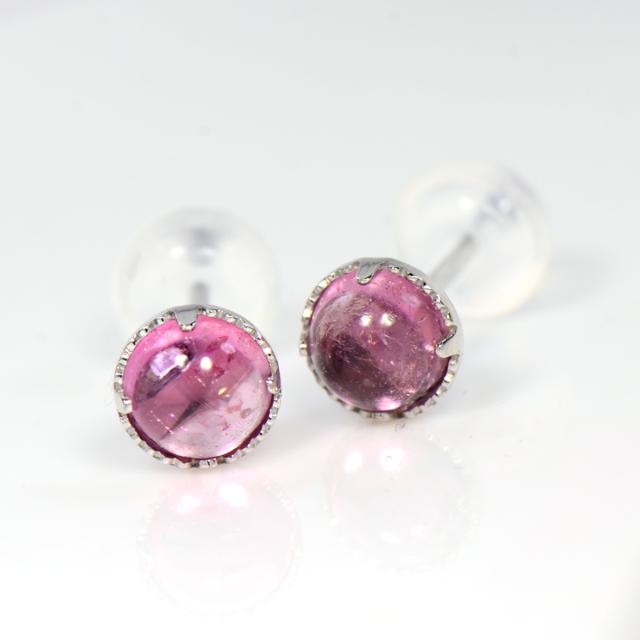 ピンクトルマリン ピアス 送料無料 Pt900プラチナ 4mm カボション ミル打ち風 両耳ペア ダブルロックキャッチ付き