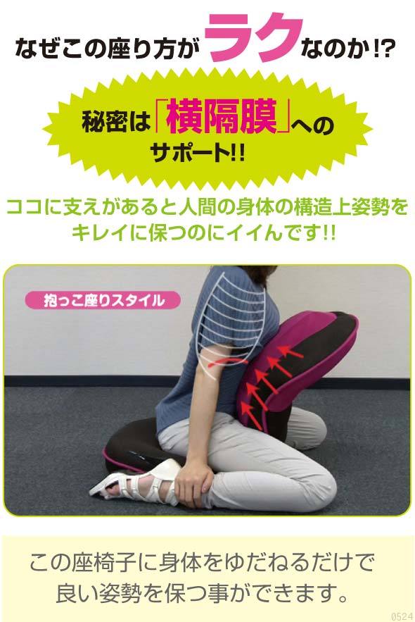 <リラックス>抱っこするように抱え込んで座る方法!特に姿勢、腰と深い関わりのある横隔膜が弱っている人は内側に丸まりがち、体の前にバーが、横隔膜を支えるような役割をしてくれます。