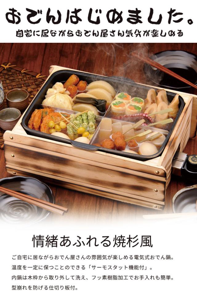 【値下げ】電気式 おでん鍋 電気 保温 木枠 卓上 家庭用 おでん鍋 フッ素樹脂加工 ホットプレート おでん 冬 湯豆腐 煮込み