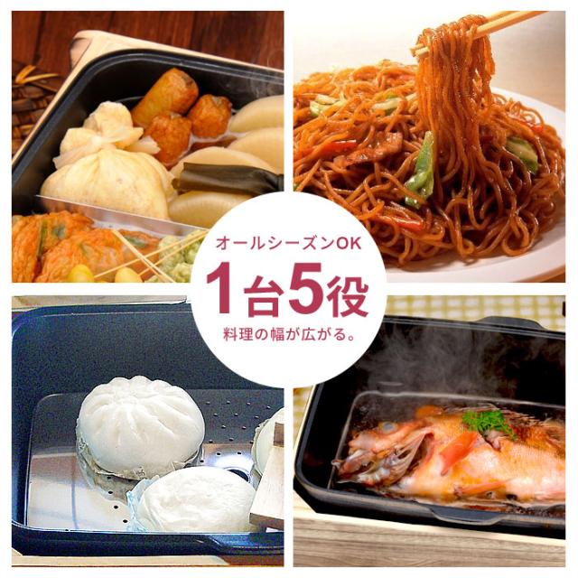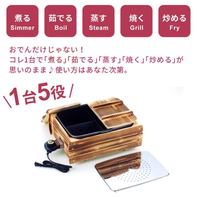 おでん鍋としてだけでなく、煮る・茹でる・蒸す・焼く・炒めるの一台5役でオールシーズン使用OK。