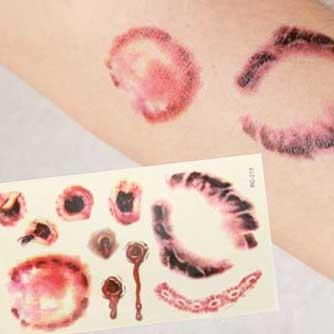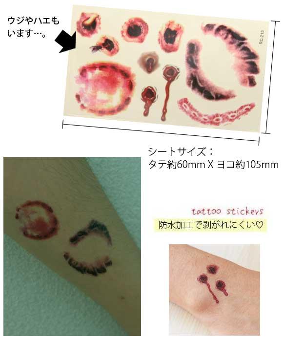 本日P2倍 タトゥーシール 噛み傷と穴 銃痕 キズ 血 ゾンビ フェイクタトゥー タトゥーステッカー ハロウィン