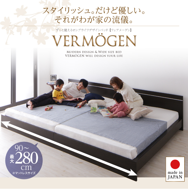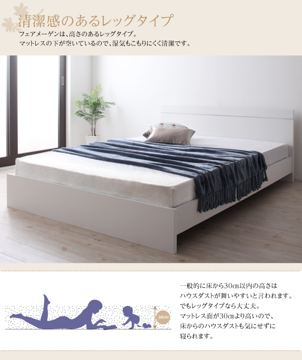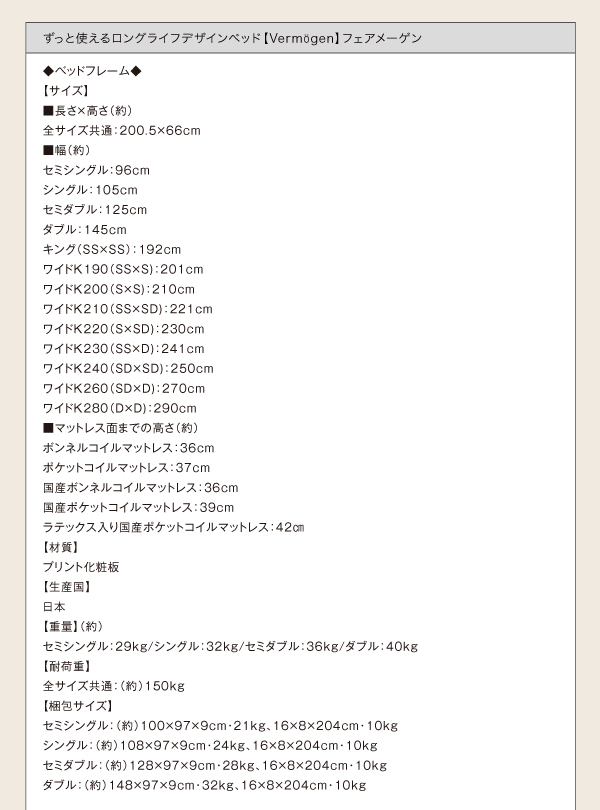 ずっと使えるロングライフデザインベッド【Vermogen】フェアメーゲン【ボンネルコイルマットレス付き】ワイドK200 ホワイト