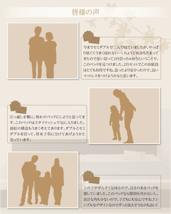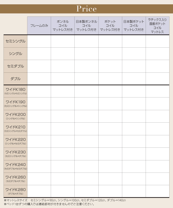 ※こちらのベッドはスプリングマットレスを乗せてご使用いただく事を前提に設計されております。