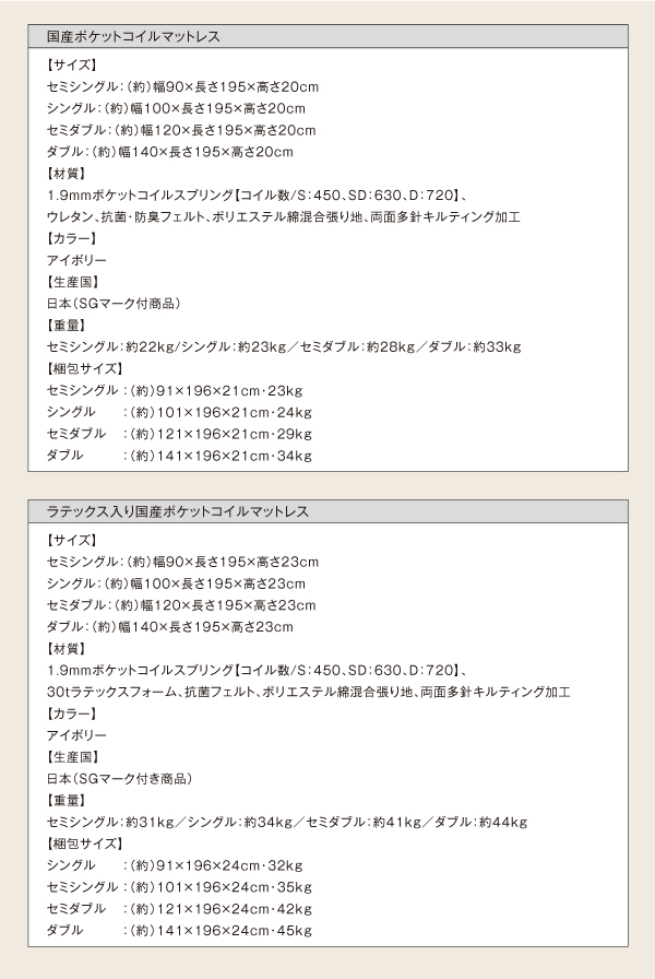 ラテックス入り国産ポケットコイルマットレス:42cm